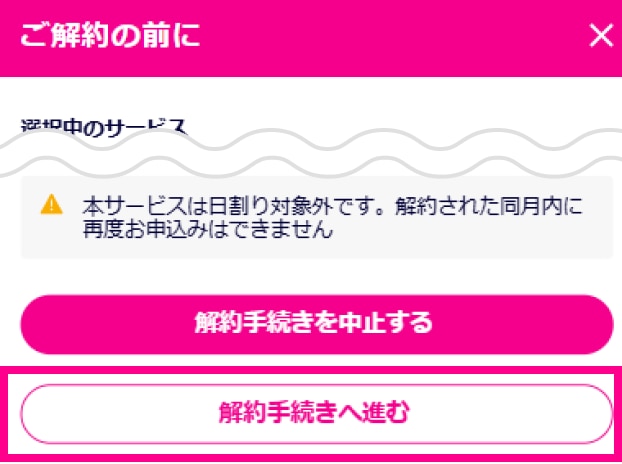 4. 内容を確認後、「解約手続きへ進む」をタップする