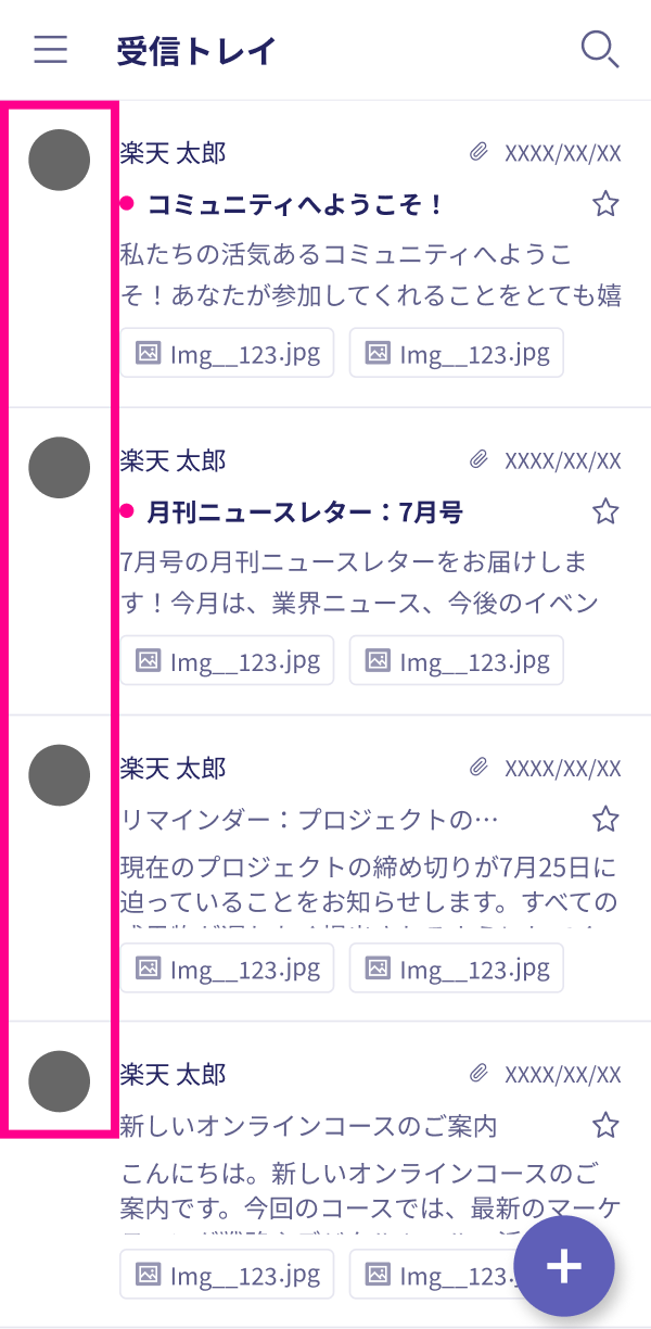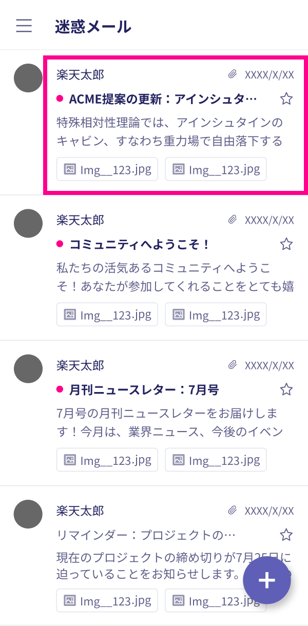 1.メイン画面から、削除したいメールのサムネイルをタップする