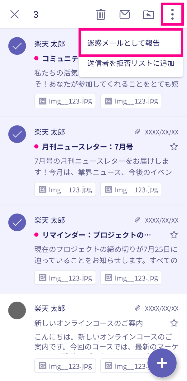 メールを複数選択することで選択されたメールを一括で報告できます。