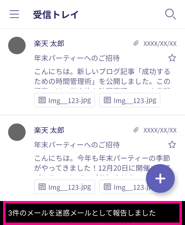 1.受信トレイ画面から迷惑メールとして報告したいメールを選択する