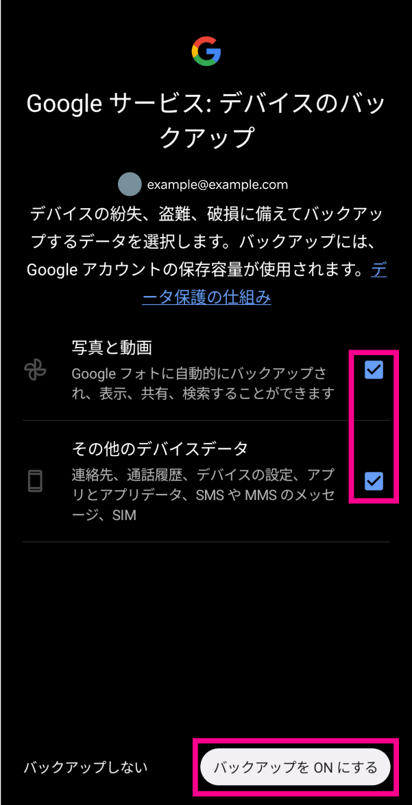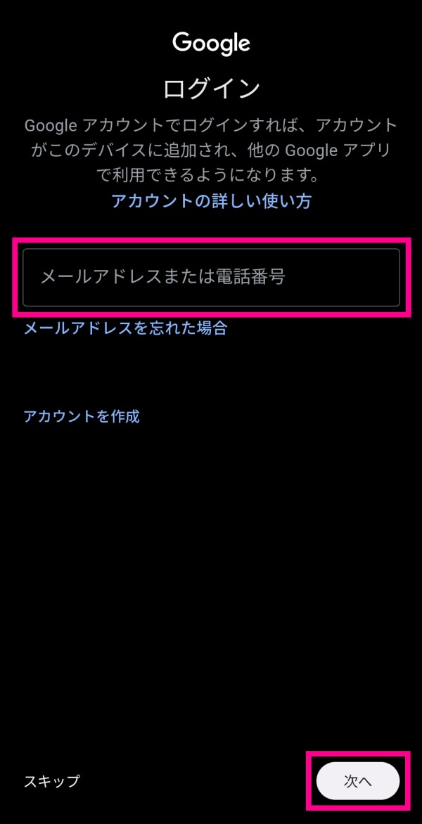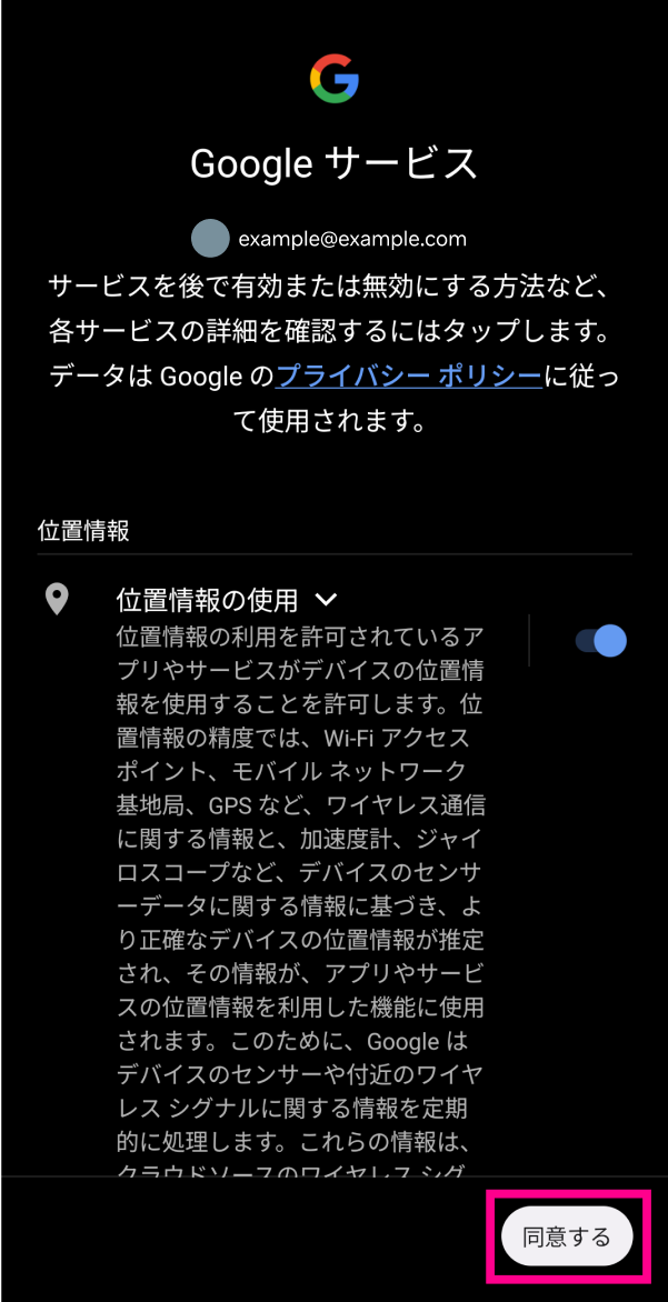 5. 5. 画面の指示に従って、Googleアカウントを設定してください。