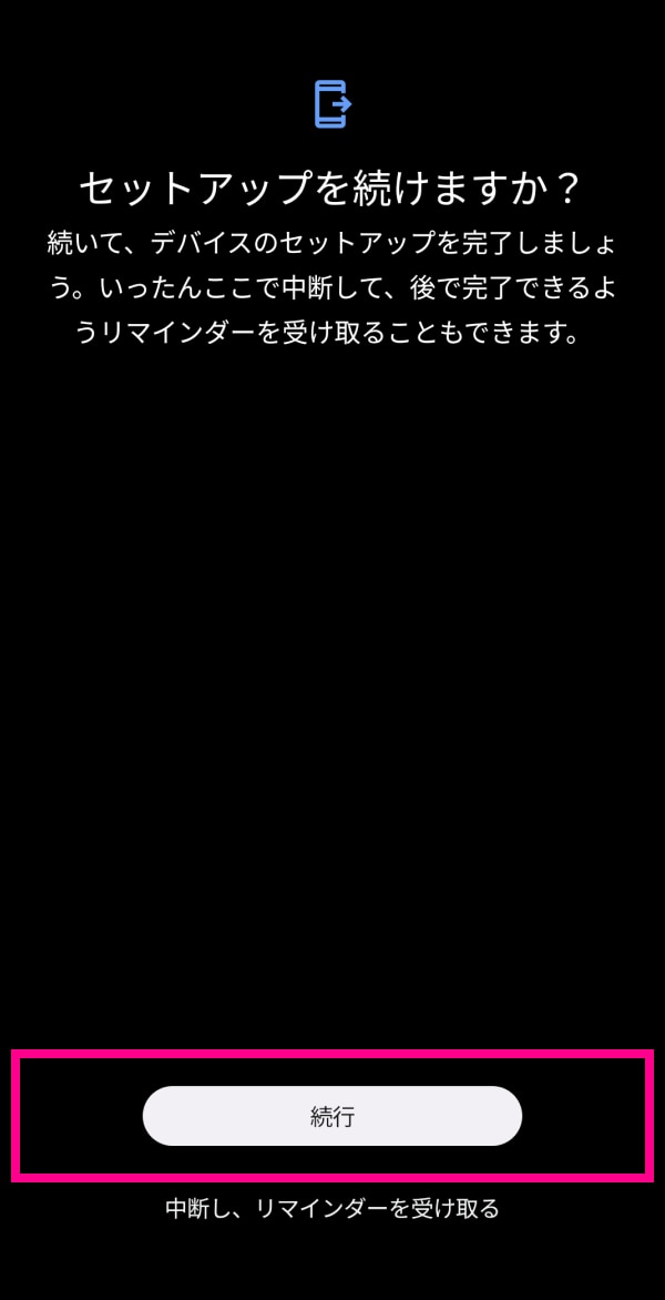9. 9. セットアップを続ける場合は、「続行」をタップしてください。