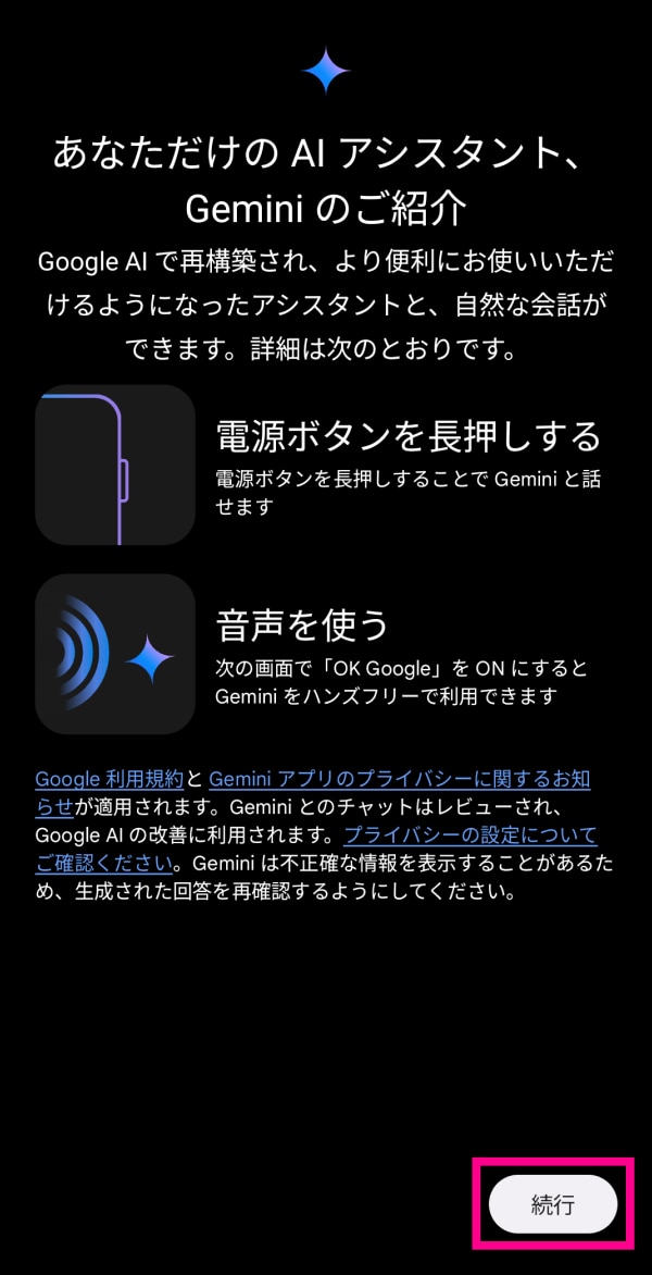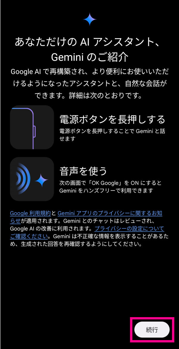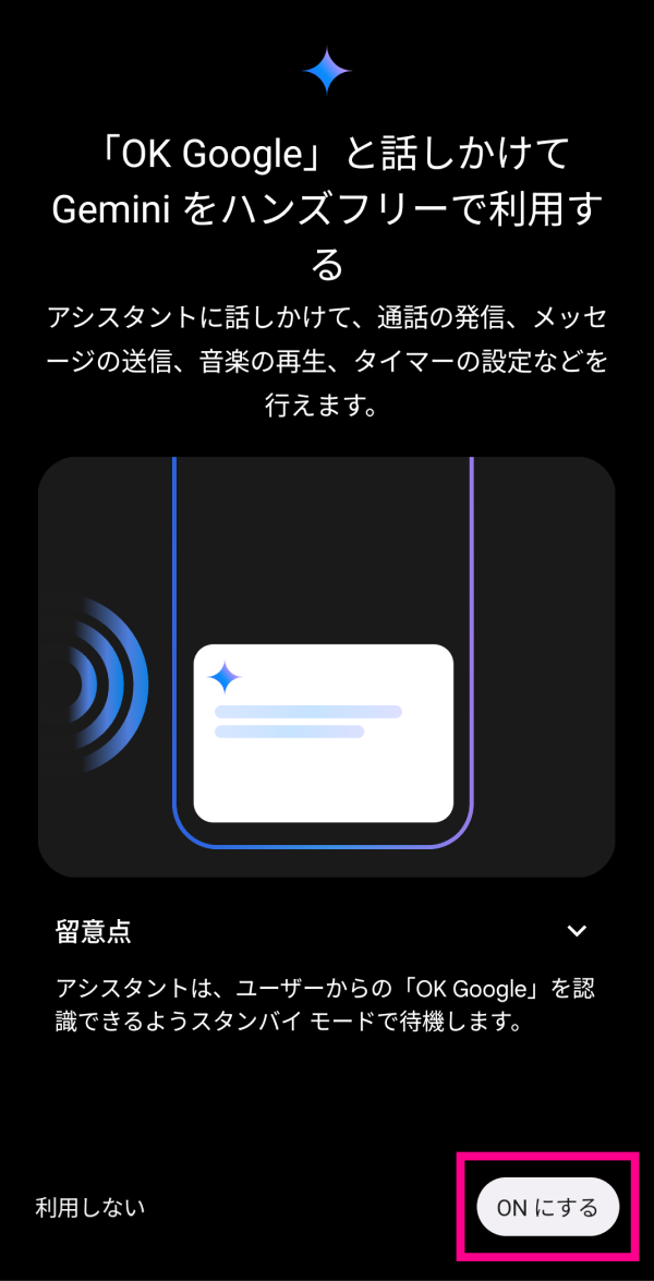 12. 12. Geminiをご利用される場合は、「ONにする」をタップしてください。