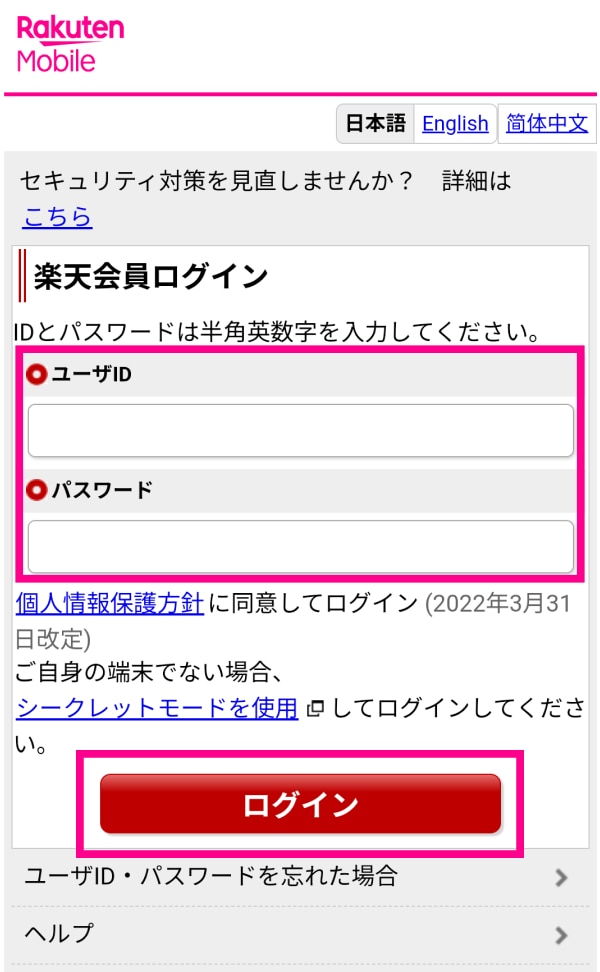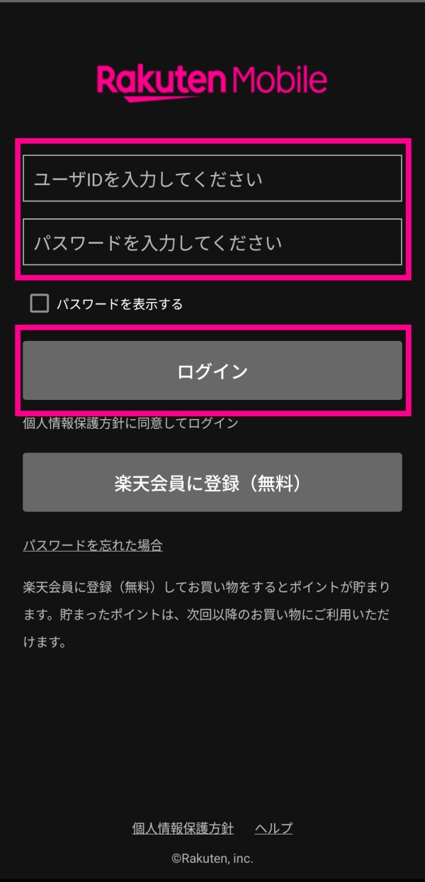 • 「楽天IDを使用せずお申込みされた方」は「楽天IDなし」の手順をご確認ください。