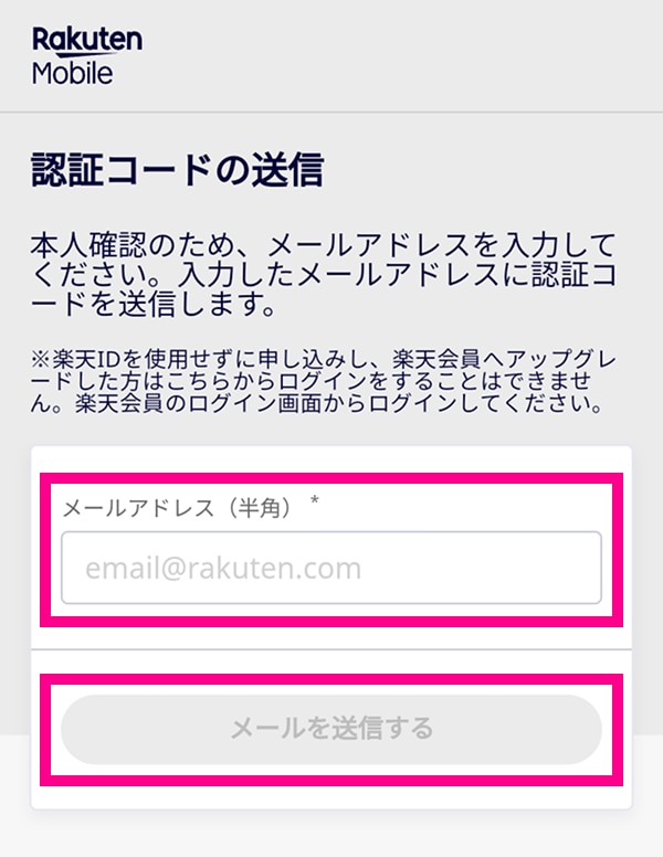 3. 「申し込み時のメールアドレス」を入力し、「メールを送信する」をタップしてください。