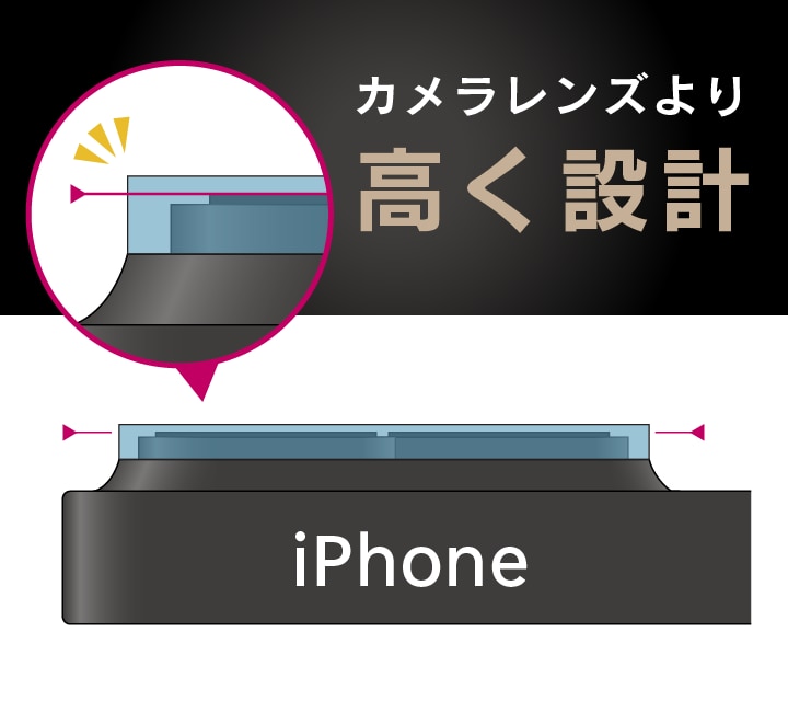 - レンズもカメラユニットも一緒に守れる一体型構造です。iPhoneの外観を損なうことなく保護できます。
