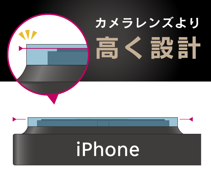 - レンズもカメラユニットも一緒に守れる一体型構造です。iPhoneの外観を損なうことなく保護できます。