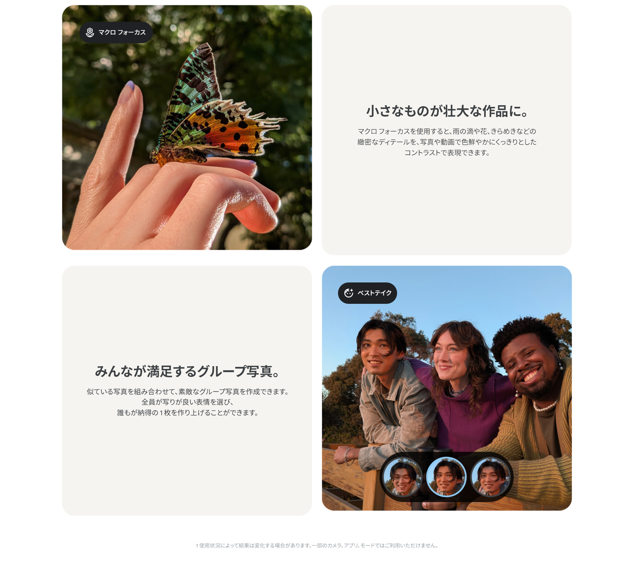 - 48メガピクセル(広角) + 13メガピクセル(ウルトラワイド)