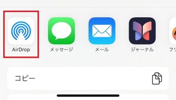 なお、送信したい相手がAirDropを受信しない設定にしている場合、送信側には共有先として表示されません。
