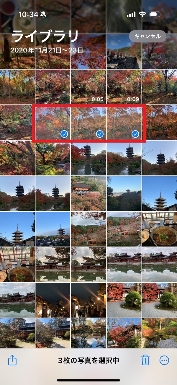 複数の写真(画像)・動画を選択すれば、AirDropで一度に送ることが可能です。
