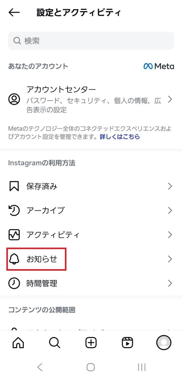 インスタのDMの通知が届かない場合は、通知設定がオフになっている可能性があります。そのため、次の手順で確認し、オンに変更しましょう。