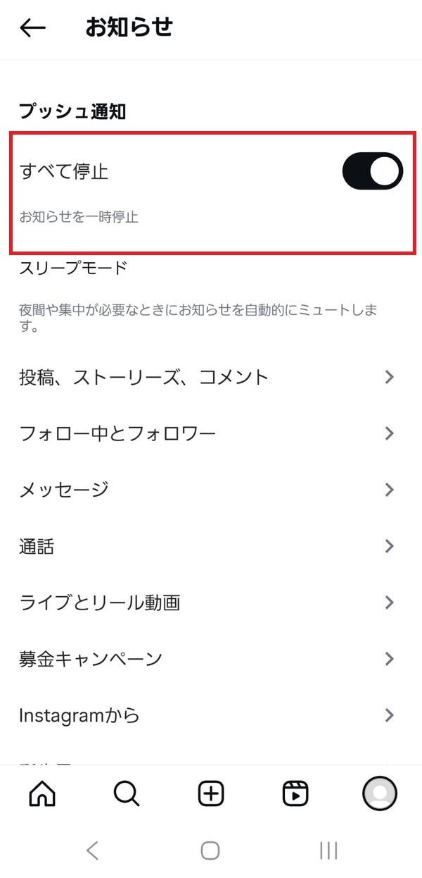 なお、「すべて停止」がオフでも、個別の設定でDMの通知がオフになっている可能性があります。