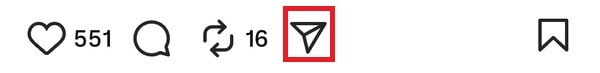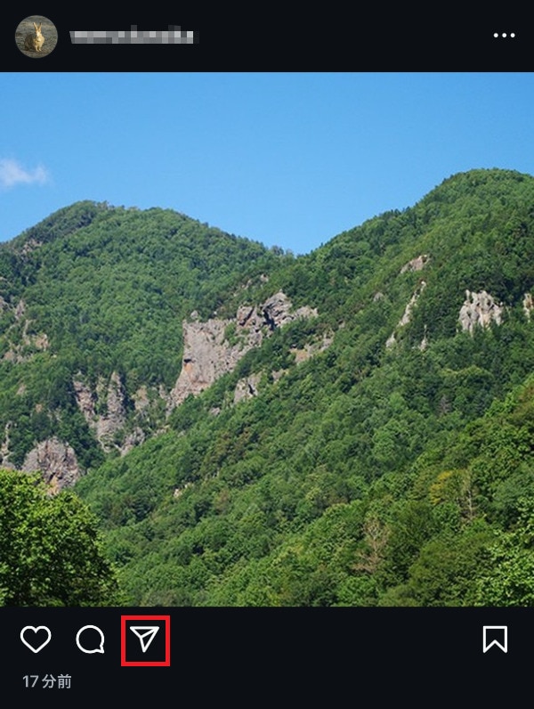 また、写真や動画の横に表示される紙飛行機アイコンをタップすると、ほかのユーザーのDMへ転送できます。