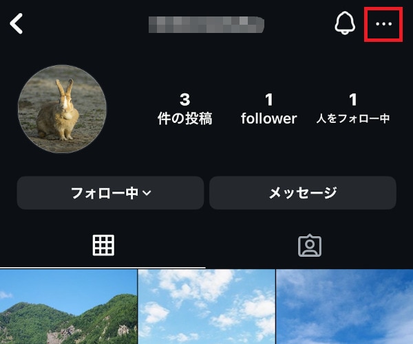 相手が非公開アカウントの場合は、プロフィール画面右上の「メニュー(三点リーダーのマーク)」アイコンをタップし、「メッセージを送信」をタップしましょう。