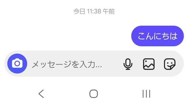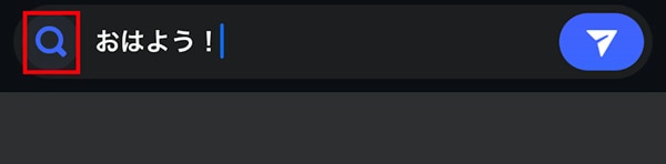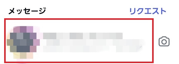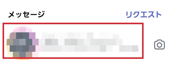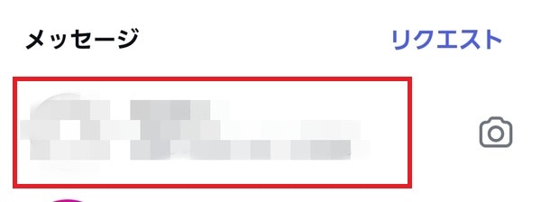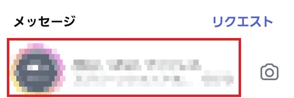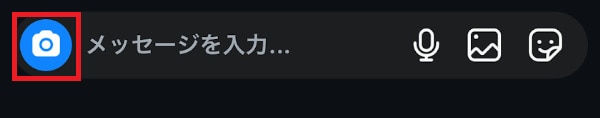 まずは、DMを送りたい相手を選んでチャット画面を開き、メッセージ入力欄の左横にあるカメラのアイコンをタップします。