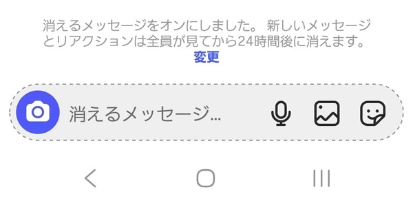 3.「消えるメッセージモード」が表示されている状態でメッセージを送る