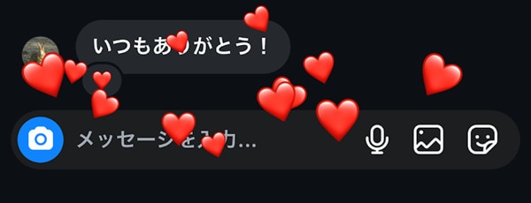 ハート、ギフトボックス、クラッカー、炎など、いくつかの種類からエフェクトを選択でき、エフェクトをタップするとエフェクト付きのメッセージが送信されます。