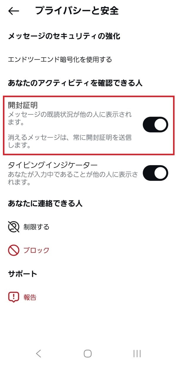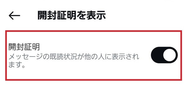 ただし、「開封証明」を切り替えるためにはDMチャットを開く必要があるため、操作時にDMが届いていた場合は、メッセージに既読が付いてしまいます。