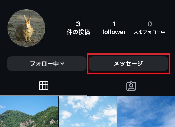 1.DMを送る相手のプロフィール画面を開き、「メッセージ」をタップする