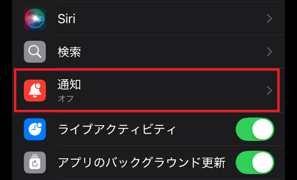 1.「設定」>「通知」>「アプリの通知」をタップする