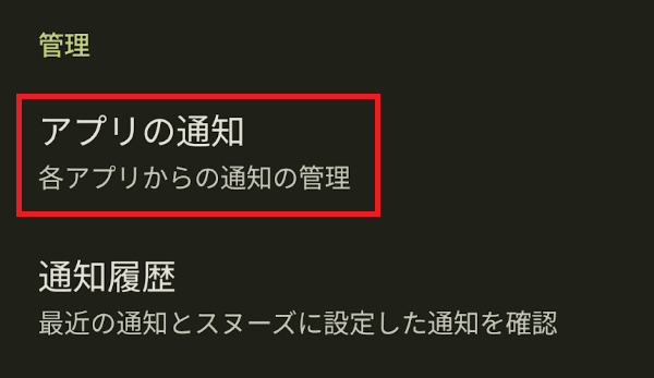 1.「設定」アプリ>「通知」>「アプリの通知」をタップする