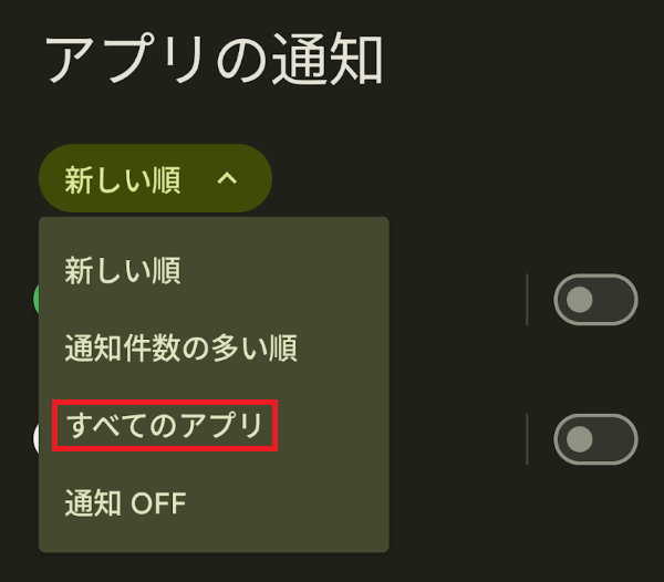 2.プルダウンを開いて「すべてのアプリ」をタップする