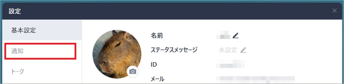 LINEアプリ内の通知がオフになっていると、すべてのトークで通知がこなくなります。