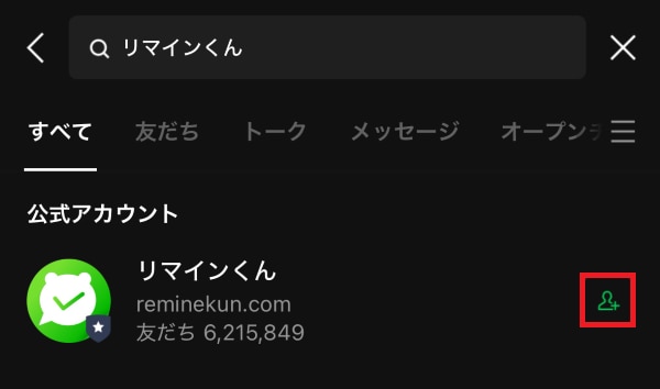 1.LINEアプリの「ホーム」タブで「リマインくん」を検索して友だち追加をする