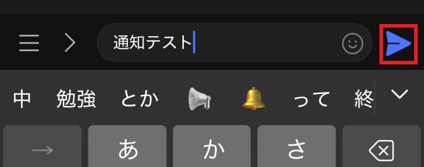 2.「リマインくん」とのトーク画面で「通知テスト」などのメッセージを送信する