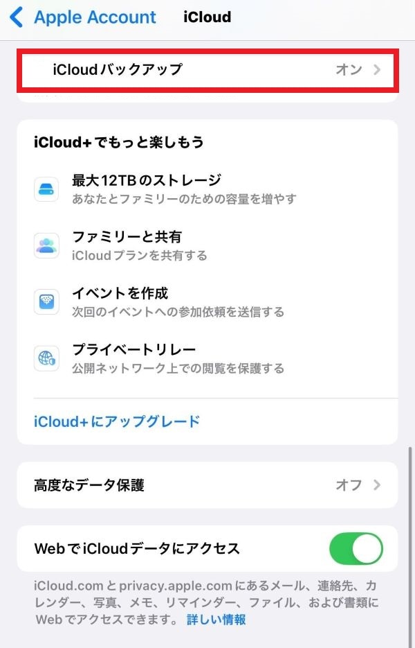 iCloudにバックアップが保存されているか確かめる方法は以下のとおりです。