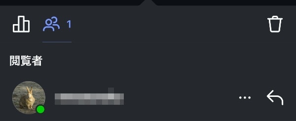 ストーリーズの閲覧者リストでは、以下のように「オンライン中」のステータスが確認できます。