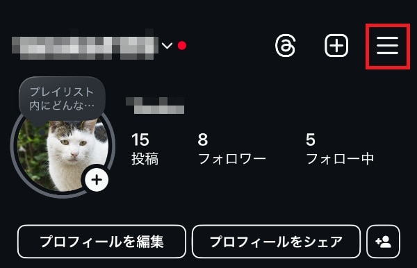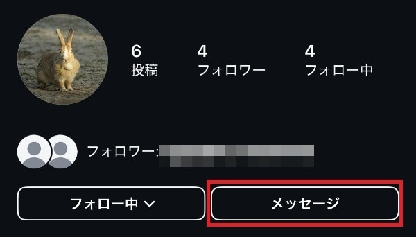 DMの画面は、相手のプロフィール画面から「メッセージ」をタップするとアクセスできます。プロフィール画面は、フィード投稿のプロフィールアイコンをタップする、フォロー/フォロワーの一覧から該当アカウントをタップするなどの方法でアクセスが可能です。