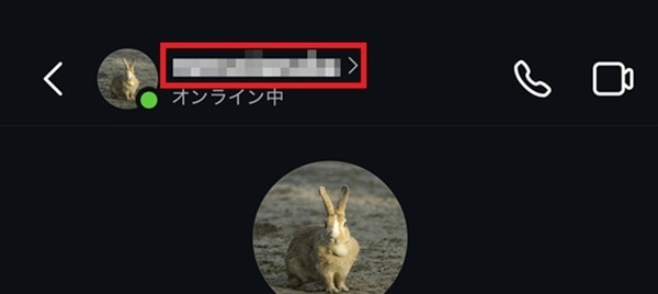 ブロックした相手の画面では、以下のようにアカウント名のみ表示され、「オンライン中」のステータスは確認できなくなります。