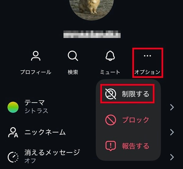 上記の方法のほか、DMからも以下の手順で制限ができます。