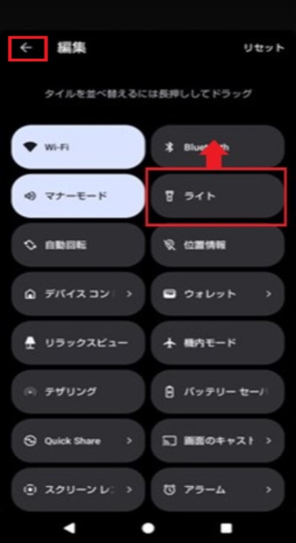 ライト機能を頻繁に使う場合は、クイック設定パネルに配置するボタンを編集しましょう。