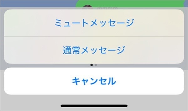 設定後は、メッセージを送信する際に、送信ボタンを長押しするとミュートメッセージが選べるようになります。