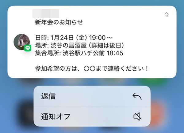 ・通知から確認する(iPhoneでは通知を長押しすると、長文の確認も可能)