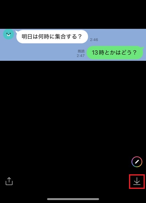 スクショ後は画像のダウンロード(下矢印のアイコン)も可能です。鉛筆のアイコンから、マーカーなどで画像をマークアップすることもできます。