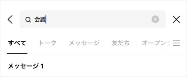 検索窓に文字を入力すると、トーク、メッセージ、友だちなどのタブが表示され、さまざまな方法で検索をかけられます。