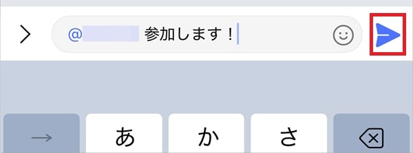 送信ボタンをタップすると、メンション付きのメッセージが送信されます。メンションした相手の名前は青字で表示されます。
