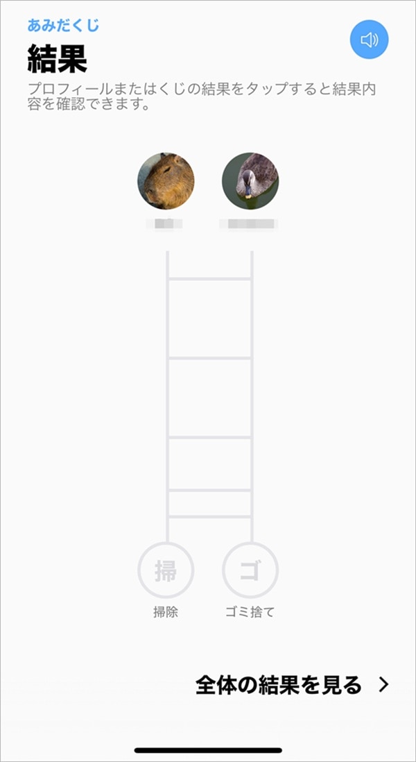 役割決め、チームわけなどでは「あみだくじ」の機能が便利です。トークルームで「+」>「あみだくじ」を選択し、画面に沿って参加者などを設定すると実行できます。