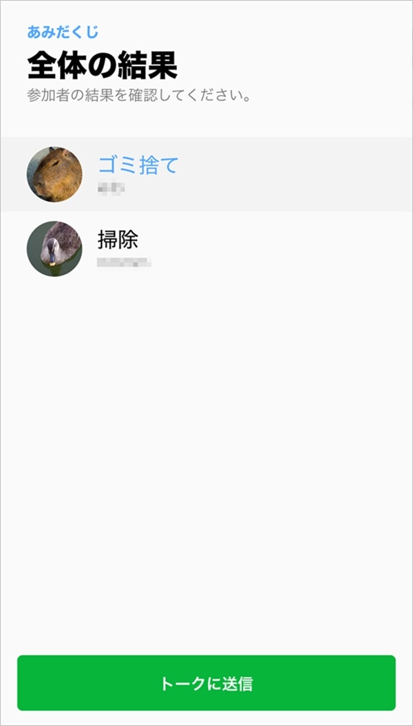 上記画像の「トークに送信」をタップすれば、下記画像のように結果をトークに送信して表示させることができます。