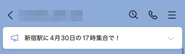 メッセージを常にトークルームの上部に表示させるアナウンス機能を使えば、大事なメッセージをトークルーム上で周知できます。