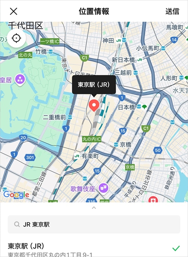 設定を完了すると、メッセージの送信画面で改行キー/Enterキーが「送信」ボタンに変わります。この「送信」ボタンからも送信が実行できます。