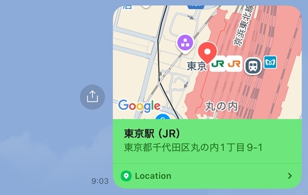 作成後に送信ボタンをタップすると、以下のように作成したスタンプが送信されます。