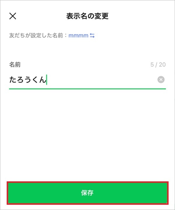 表示名を入力して「保存」をタップすると、表示名が変更されます。