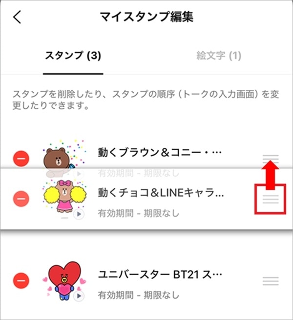 LINEスタンプは並び替えをして、使いやすい順番に整理できます。