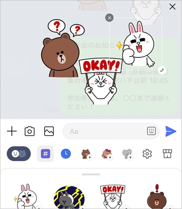 スタンプアレンジは、スタンプを自由に組み合わせてひとつのスタンプとして送信できる機能です。