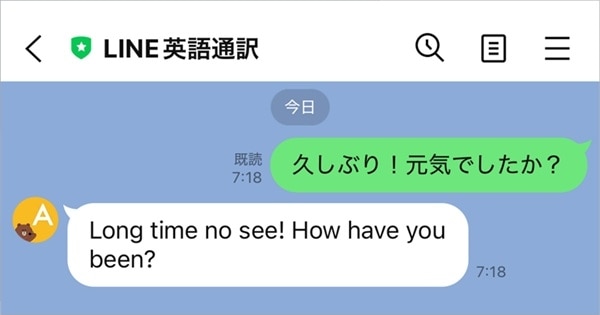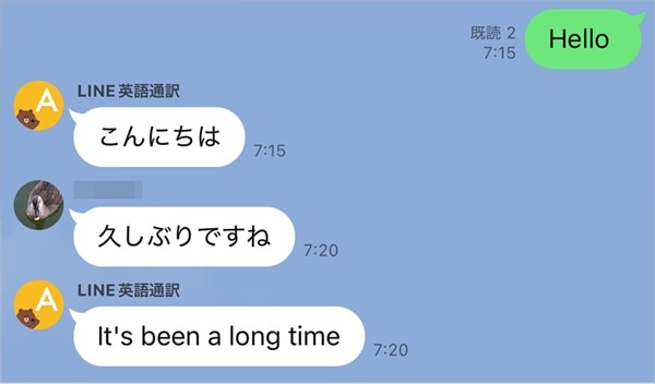 また、友だちとのトークに上記の公式アカウントを招待すれば、双方の言語を逐一翻訳してくれます(通訳が不要になったら、「@bye」とメッセージすると退出してくれます)。