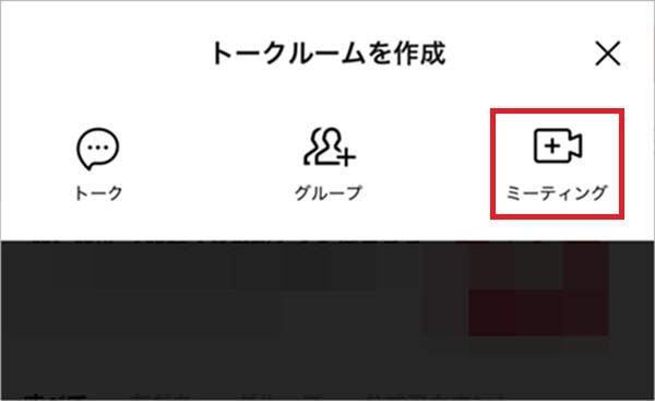 トークタブの右上の吹き出しアイコン>「ミーティング」の順にタップすると、画面に沿ってミーティングのセッティングが可能です。